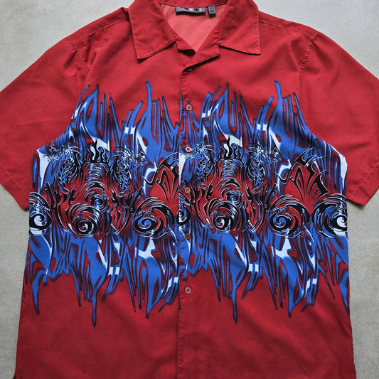 Vintage Y2K Mogul Dragon Short Sleeve Button Up Shirt - L