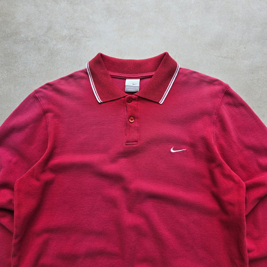 Vintage Nike Embroidered Mini Swoosh Long Sleeve Polo Shirt - M