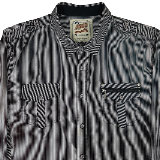 Vintage JNCO Striped Button Up Shirt - XL