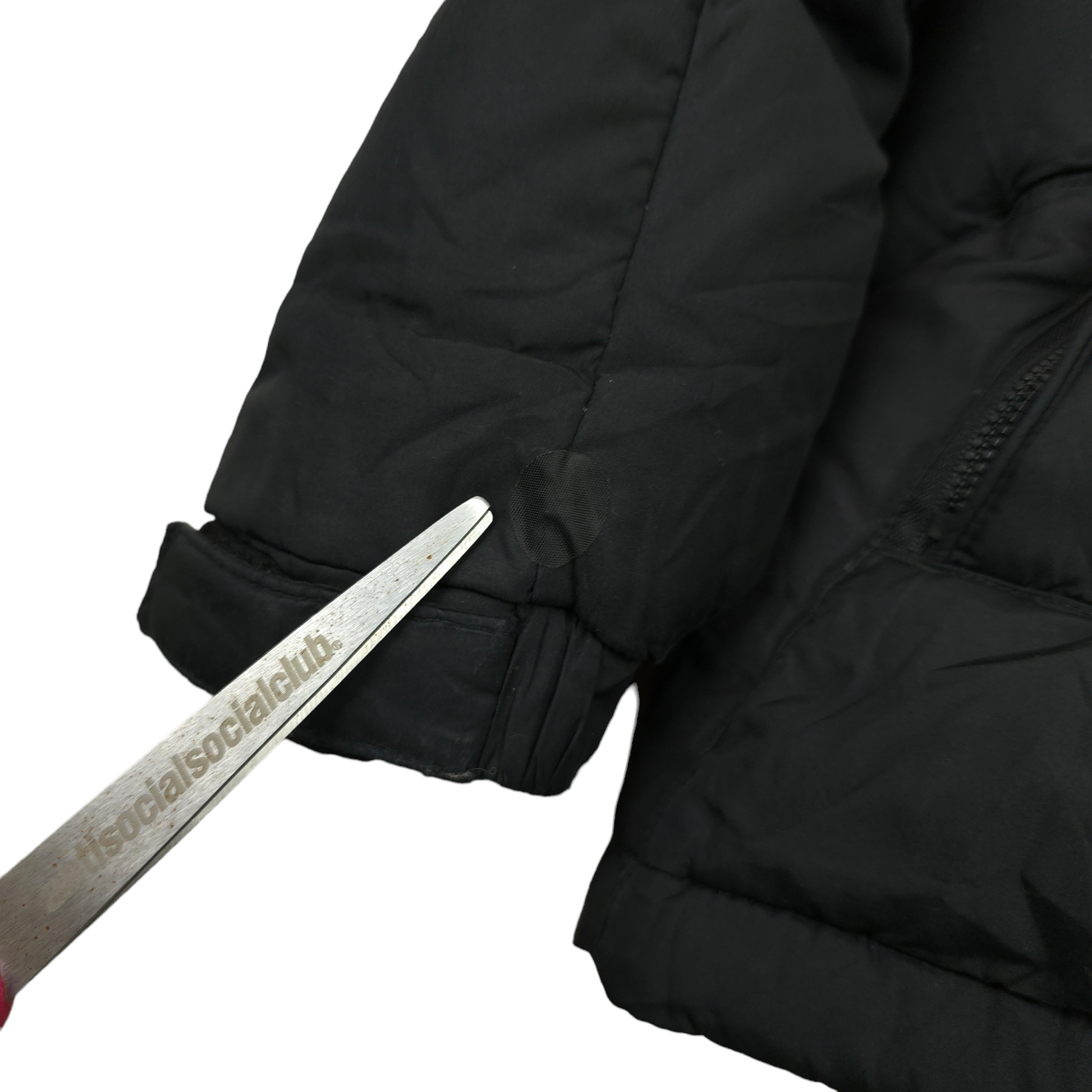 Condition: 7/10 - In good condition, Has some general signs of wear + a few small marks and a repair on the sleeve, also one of the pull tabs for the zipper pocket has broken off but still functions fine. (see photos)