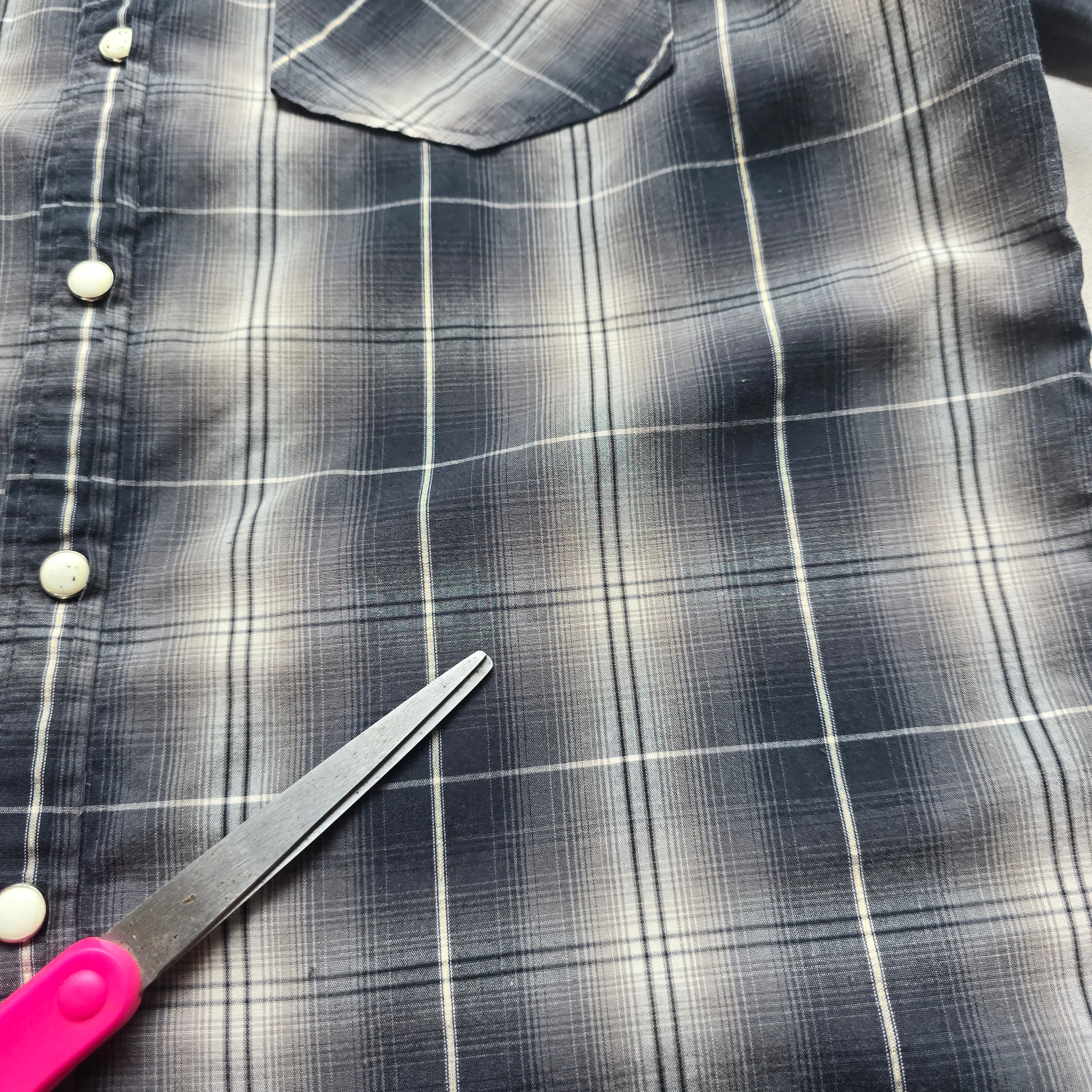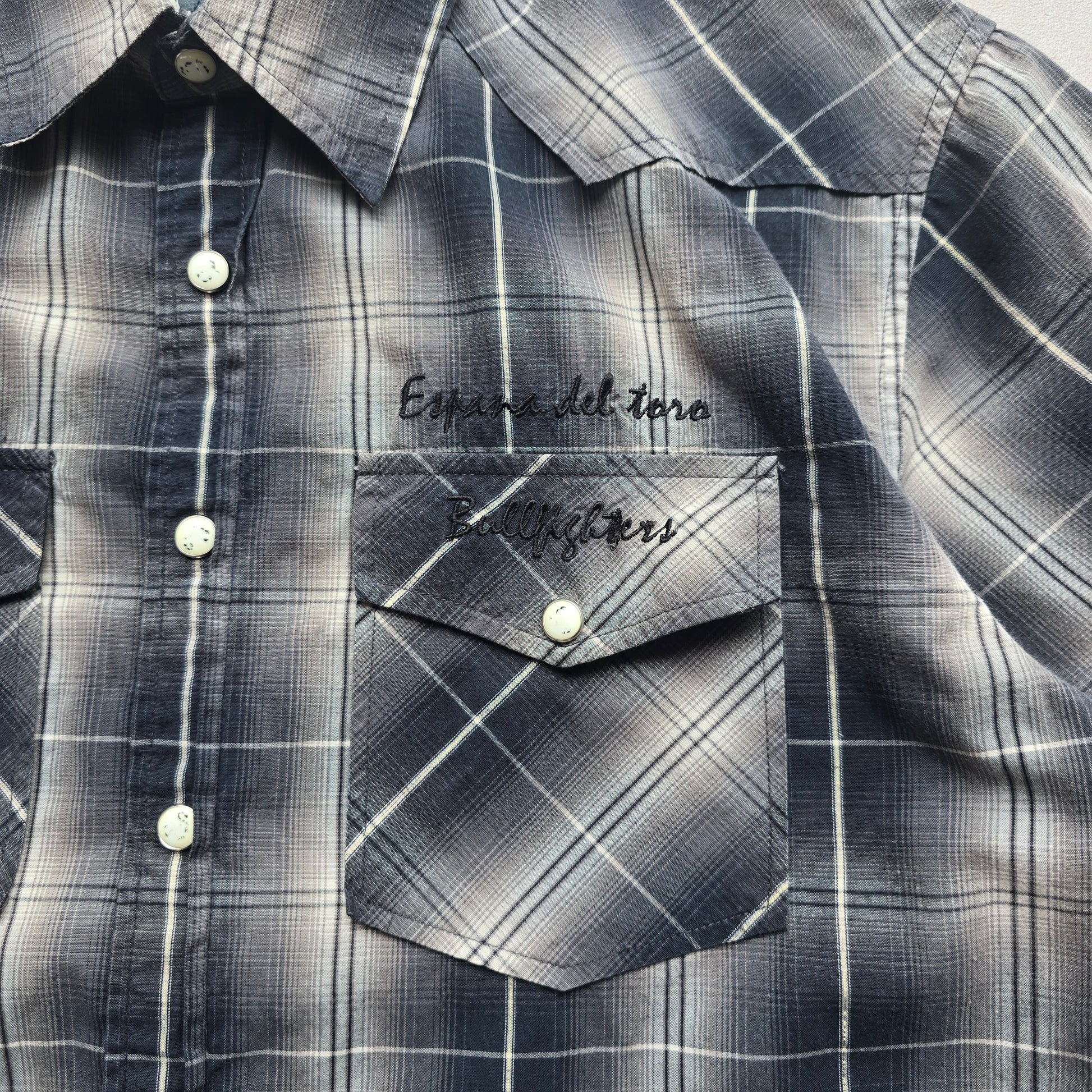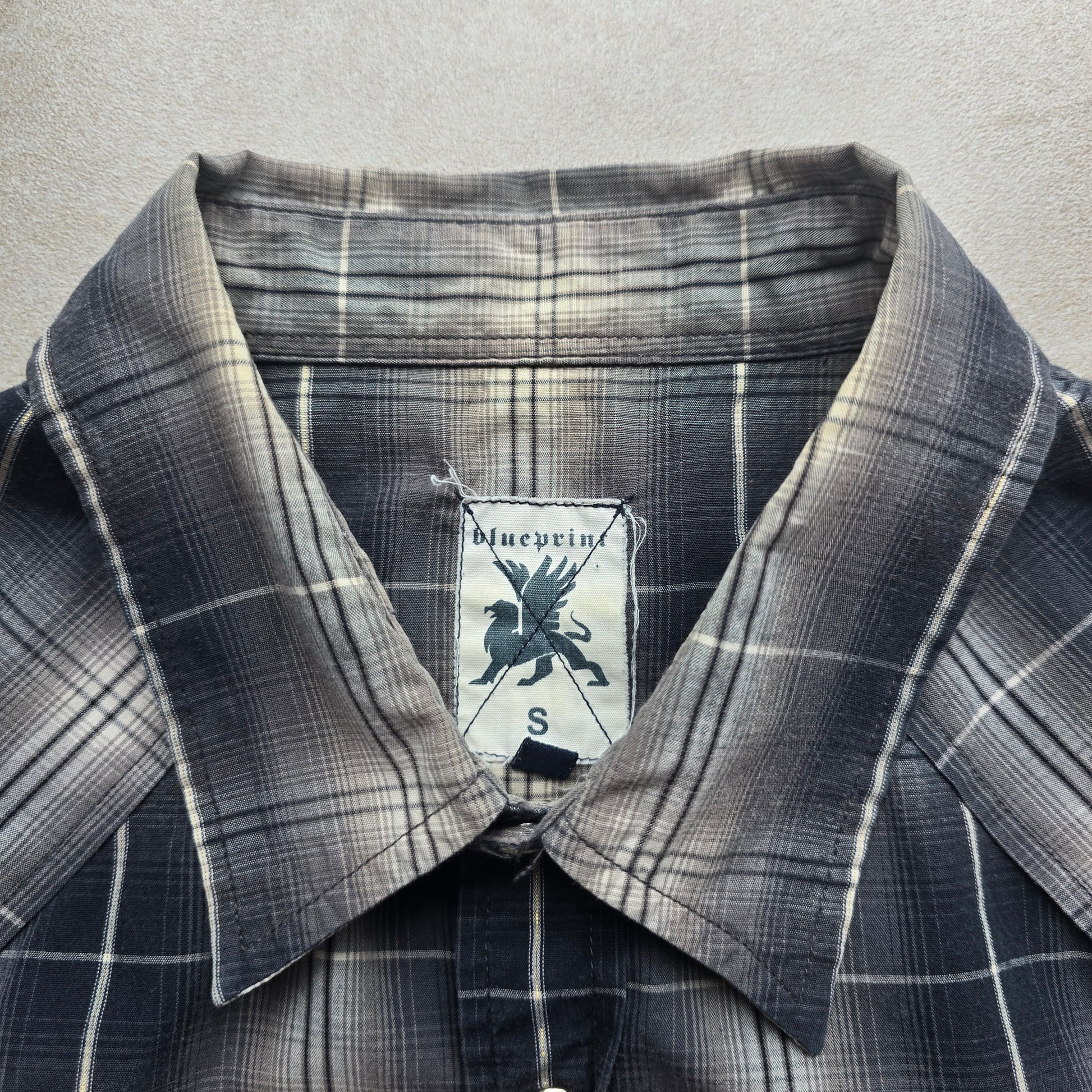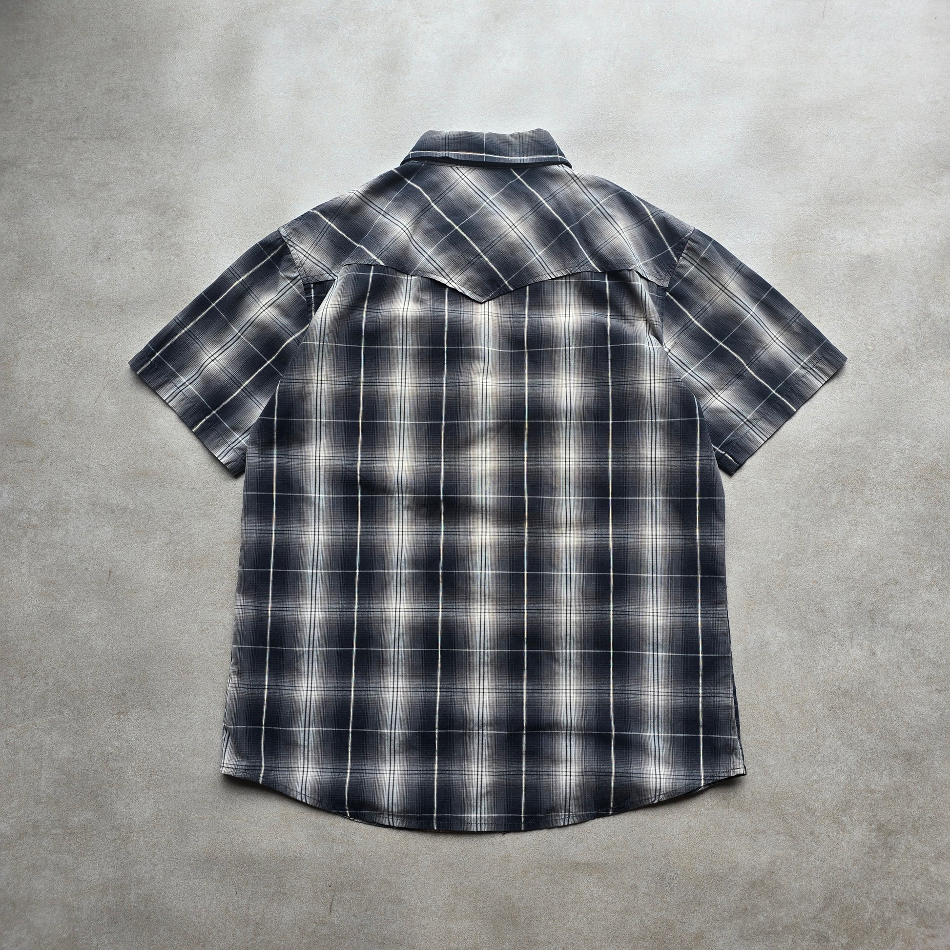 Vintage Y2K Blueprint Check Short Sleeve Pearl Snap Shirt - S