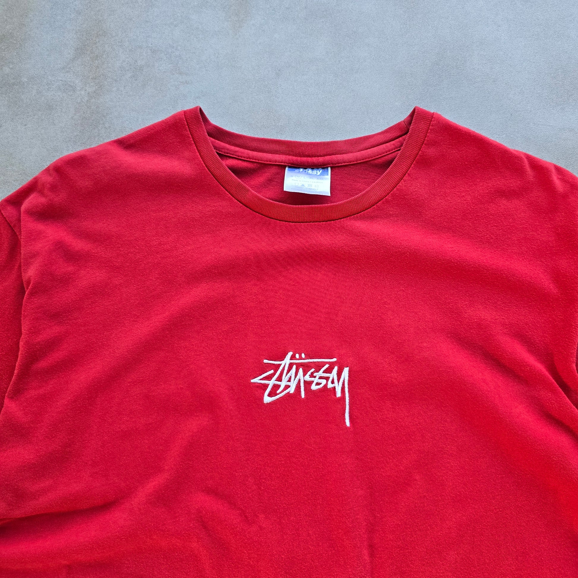 Y2K Stussy Embroidered Centre Logo Tee - M